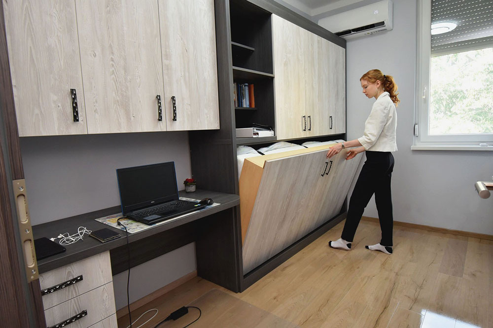 A szekrényágy az ideális választás a hely optimalizálására és a multifunkcionális tér kialakítására. A mellette szóló legfontosabb érv a helytakarékosság. És ebben rejlik ennek a bútordarabnak a legjelentősebb előnye is. Egyetlen mozdulattal képes átalakulni zárt szekrényből fekvőhellyé. A szekrényágy több szempontból is kényelmes. Először is azért, mert a matrac, amin alszunk az általunk választott legkomfortosabb. Nem kell megalkudnunk, mint egy rekamiénál ahol össze kell hajtogatni az ágybetétet ahhoz, hogy el tudjuk tüntetni a fekhelyünket. Elsősorban olyan helyre javasoljuk ahol kevés a hely, kicsi a szoba, rossz az elrendezés, vagy ahol kevesebb van egy szobával. Hétvégi házakba, nyaralókba, kollégiumba, garzon vagy apartman-lakásokba, panelokba egy ilyen ággyal egy szobányi területet is meg tudunk takarítani- akár 4-5-6 nm-t is. Ezzel valóban működhet akár egy 30 m2 alatti lakás is.