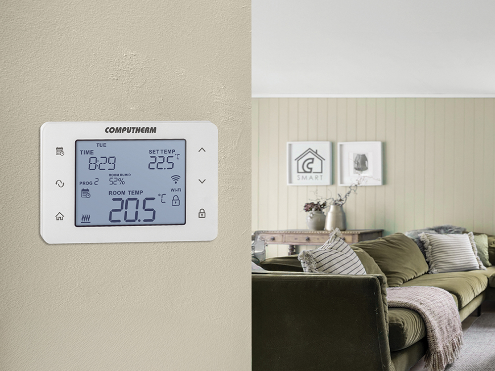 A korszerű fűtés ma már nem arról szól, hogy „magasabb fokozatra tekerjük a radiátort”, hanem arról, hogy pontosan ott és akkor legyen meleg, ahol és amikor szükség van rá. Ebben segítenek a COMPUTHERM Wi-Fi termosztátok, amelyek rugalmas programozhatóságot és távoli elérést biztosítanak, valamint extra biztonsági funkciókkal óvják a fűtési / hűtési rendszert. Így akár munka közben, útközben vagy nyaralás alatt is módosítható a hőmérséklet – mindez a komfort növelése mellett jelentős energiamegtakarítással is járhat.