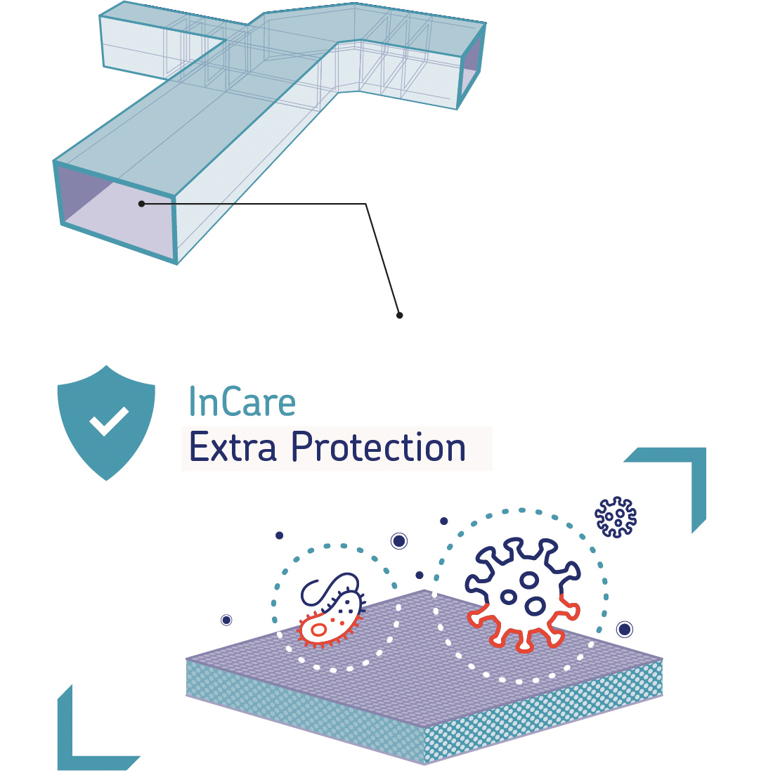 Az InCare gyártástechnológiával létrehozott URSA termékek célja a beltéri levegő minőségének javítása az épületekben, a mikroorganizmusok elszaporodásának csökkentésével. Amikor a HVAC légcsatornarendszer levegőjében lévő baktériumok, vírusok vagy gombák érintkezésbe kerülnek a szerelt URSA AIR légcsatorna panelek rézionnal kezelt felületével, megindul az antimikrobiális aktivitás: a rézionok gyors és hatékony biocid hatást fejtenek ki, mert megbontják a mikroorganizmusok sejtfalát, gátolják azok szaporodását, és rövid időn belül inaktiválják őket. A technológia laboratóriumi tesztek szerint akár 99,99%-kal csökkenti a baktériumok és vírusok – köztük humán koronavírus – jelenlétét (ISO 20743:2013 szabvány alapján tesztelve).